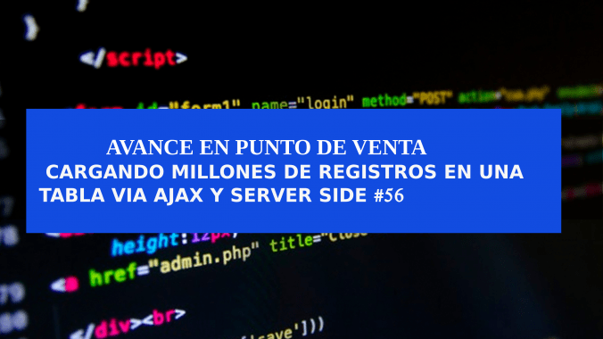 Buenos días amigos,en este video vamos a cargar la tabla mediante ajax usando el server side, lado del servidor, el cual es muy útil para cargar datos con tablas con gran cantidad de registros hablamos de cientos de miles y mas.