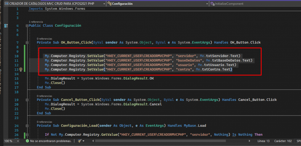 Lo ideal fuera guardar esas variables en la variables de configuración pero en Visual Basic 2022 con .NET 6.0 no funciona, entonces nos queda usar el registro de windows “REGEDIT” con my.computer.registry