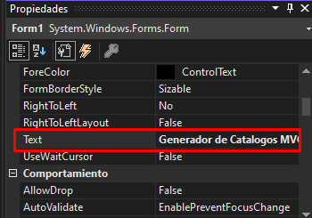 Para cambiar el titulo damos click en la ventana y modificamos la propiedad Text