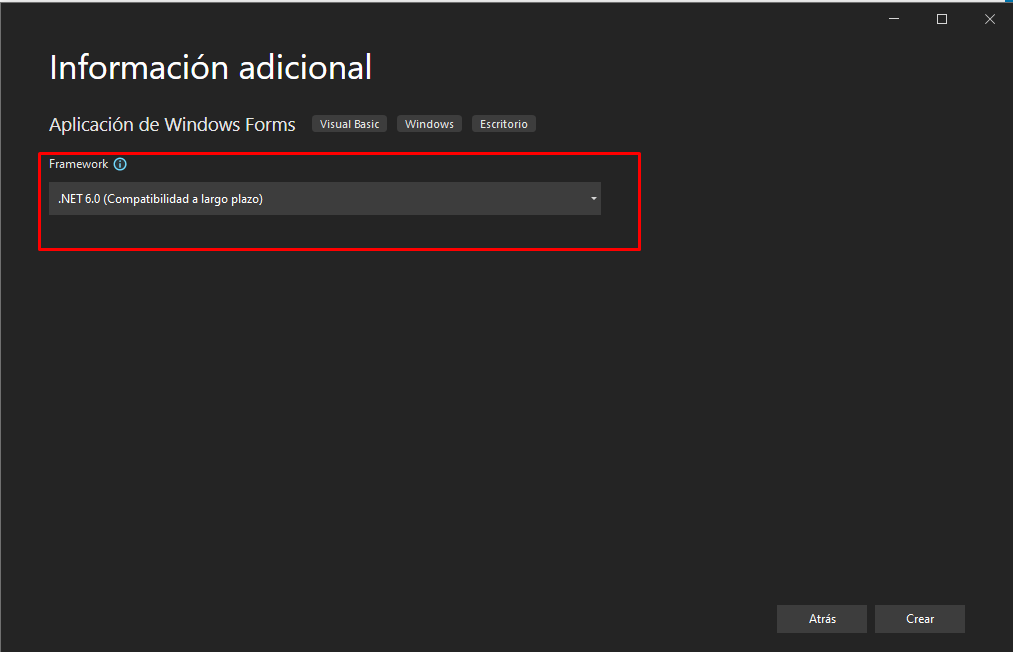 Ahora haremos la aplicación usando la ultima versión de Visual Basic que esta dentro de la versión community 2022