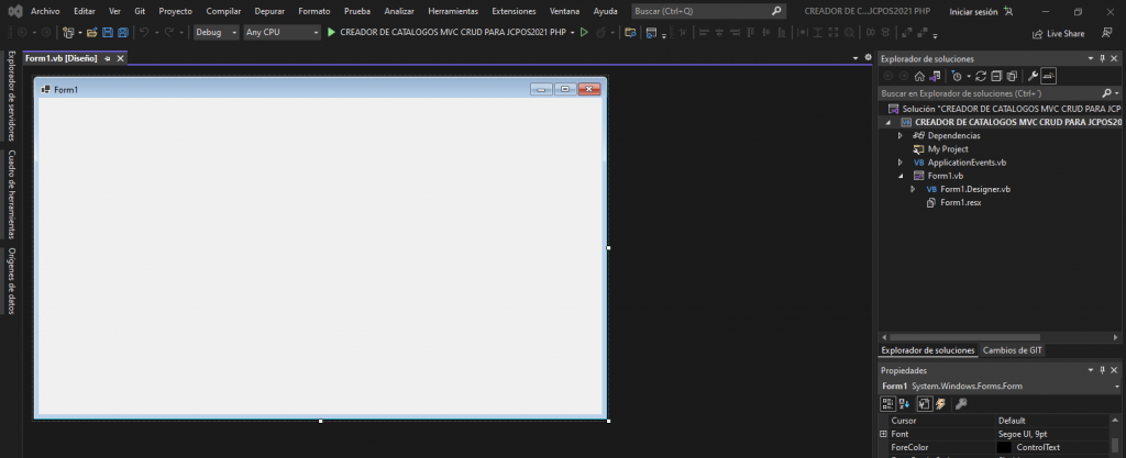 Al iniciar el proyecto tenemos esta venta básica, vemos que en el titulo dice Form1 y el icono es un icono genérico