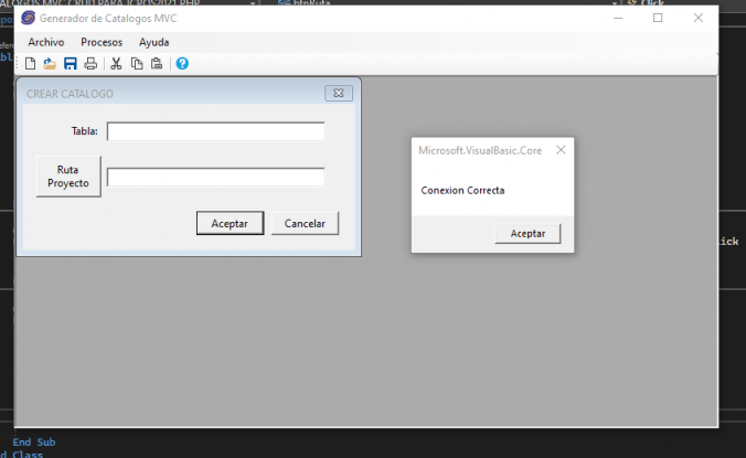 Ahora para grabar el los valores que escribimos en los controles ponemos el siguiente código en el evento click del botón aceptar