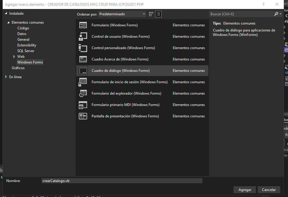 Ya vimos como usar las funciones registry para guardar las configuraciones de la base de de datos, ahora vamos a crear otra ventana para hacer el generador de catalogos.