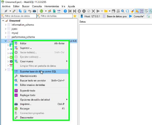 También podemos generar respaldos y levantarlos desde HeidiSQL