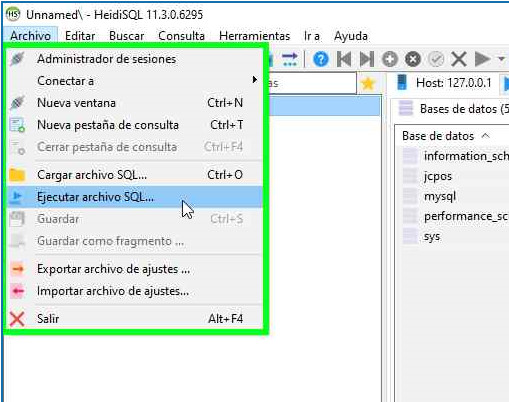 Para levantar la base de datos desde HeidiSQL nomas nos vamos al menú Archivo y seleccionamos Ejecutar archivo SQL