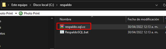 Ahora ejecutamos el siguiente comando para realizar el respaldo