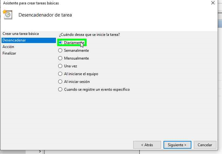 Escogemos cada tanto tiempo se va ejecutar y a que hora