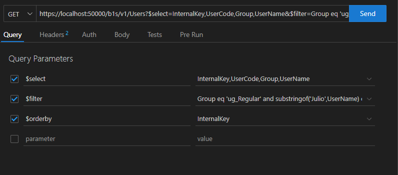 CURLOPT_URL => "https://localhost:50000/b1s/v1/PriceLists?%24select=PriceListNo%2CPriceListName&%24filter=Active%20eq%20'tYES'%20%20and%20substringof('$filtro'%2CPriceListNo)%20or%20substringof('$filtro'%2CPriceListName)",