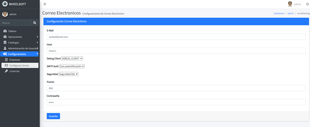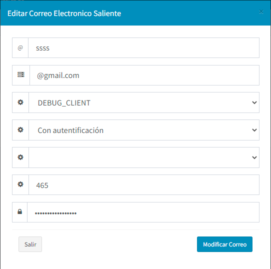 En este módulo se configura el correo, esto es para el momento de guardar el registro se envíe el PDF al cliente, si no está bien configurado entonces no se enviará.