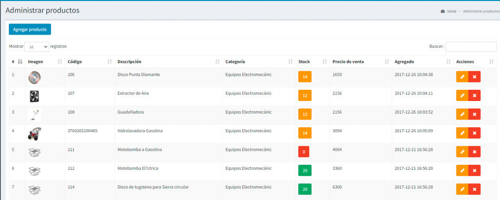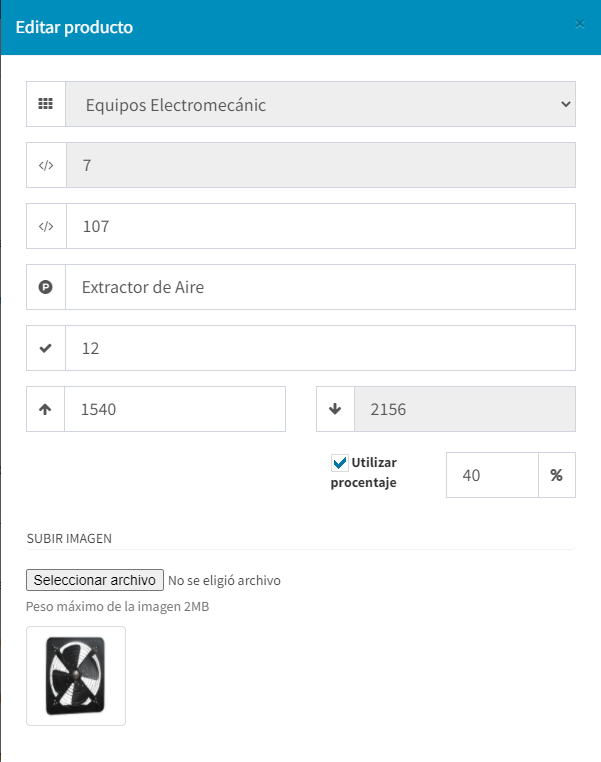 Esta es la ventana para modificar un producto existente, también podemos modificar la existencia