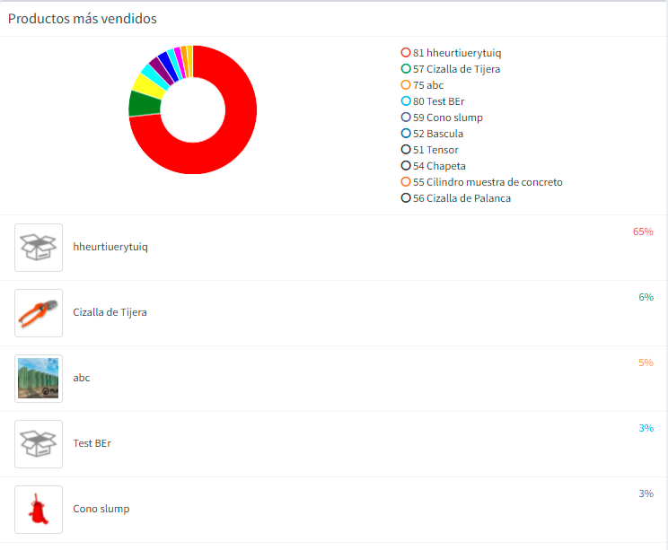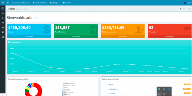 Vemos una grafica de los productos mas vendidosEn este grafico nos muestra los clientes que mas nos deben, si damos click en el nombre nos lleva a la lista de ventas pendientes de pago de ese cliente