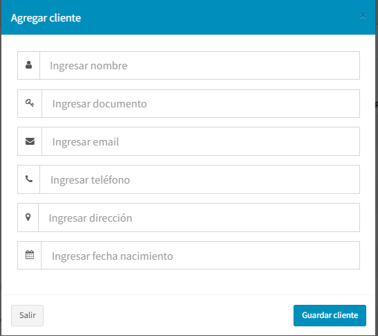 Se puede observar que también existen dos botones uno llamado Agregar Cliente Nuevo el cual nos permite registrar un cliente que actualmente no existe en la base de datos del programa