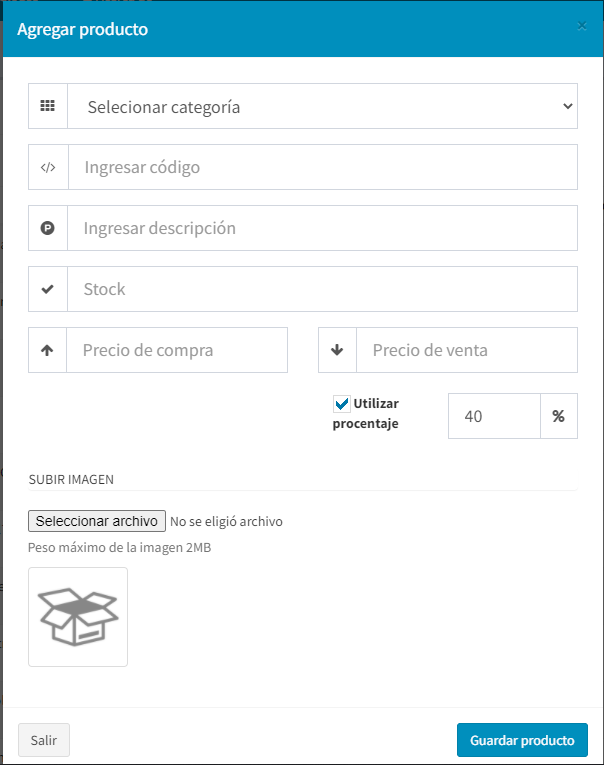 Al agregar un producto nos pide los siguientes datos