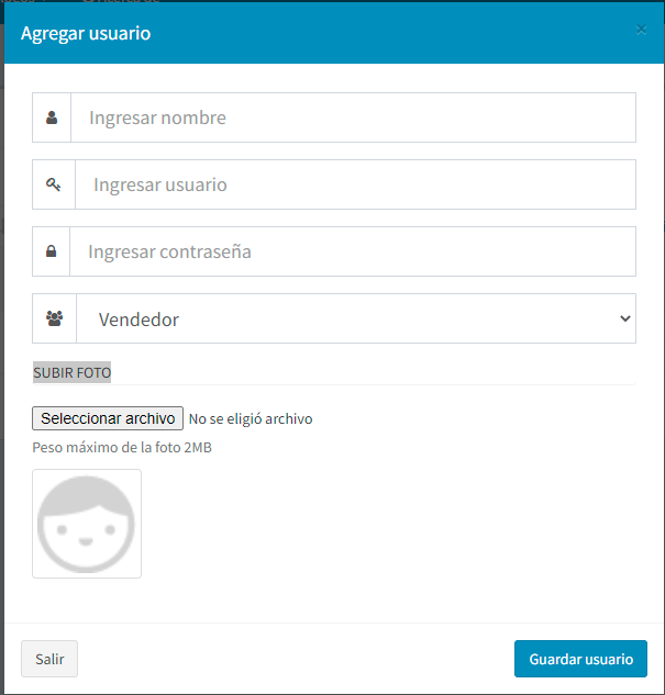 Al darle clic al botón agregar nos saldrá esta ventana con la cual podremos dar de alta usuarios.