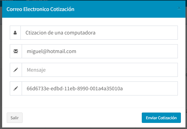 Sirve para configurar el envió de correo, estos datos nos permitirá enviar directamente los correos de las cotizaciones al correo del cliente