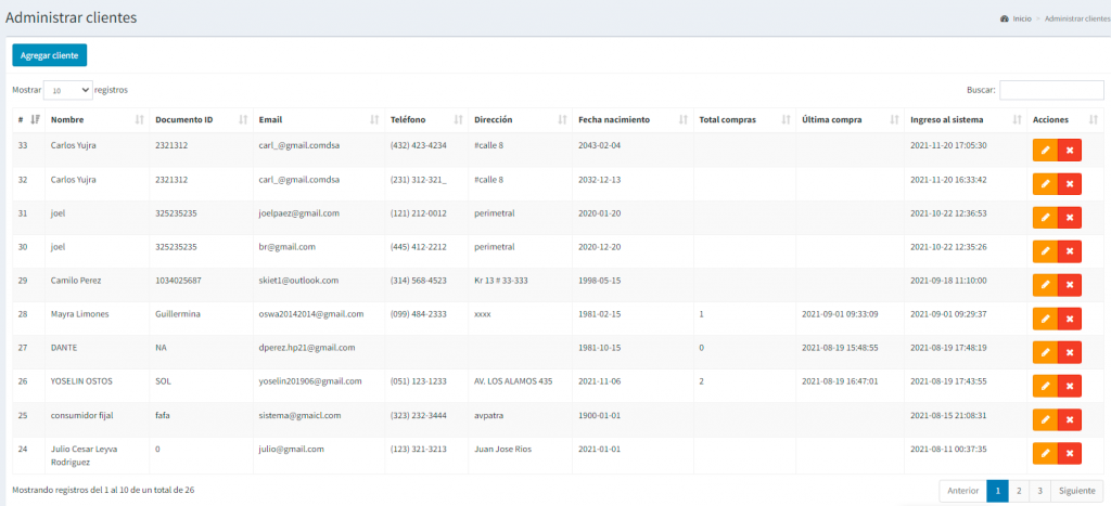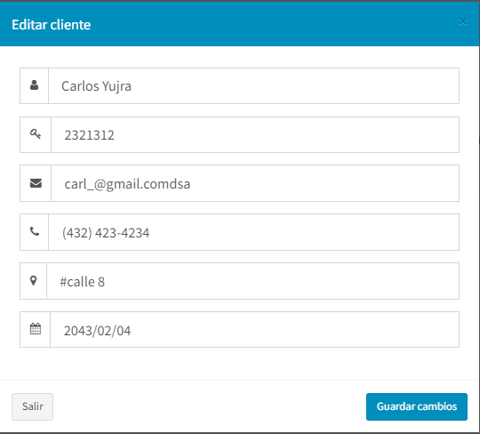 Y al darle modificar a un cliente ya modificado nos trae los datos registrados para cambiarlos