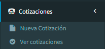 Este menú consta de dos sub menús 1. Nueva Cotización 2. Ver Cotizaciones
