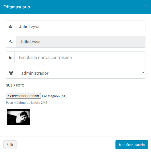 En este catálogo podemos dar altas, bajas y cambios de usuarios, así como cambiar la contraseña