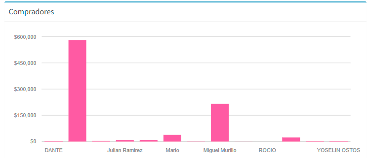 En el grafico de ventas va mostrando el total de ventas por periodo “MES”