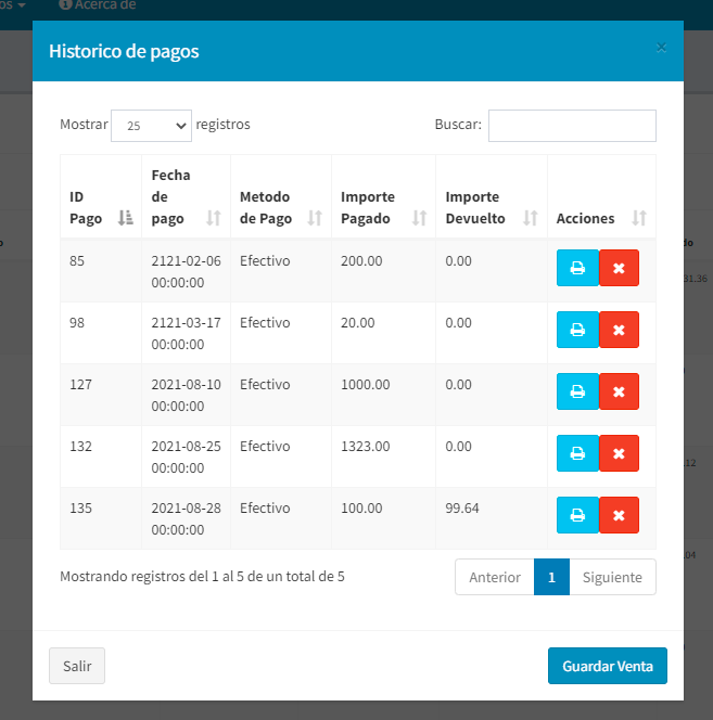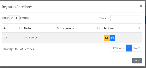Tenemos también el botón de ver registros anteriores el cual nos permitirá ver los registros del cliente que esté seleccionado