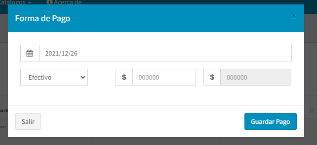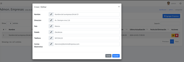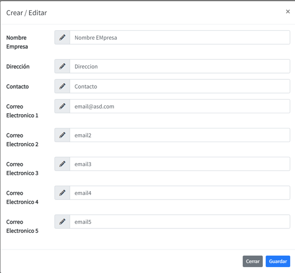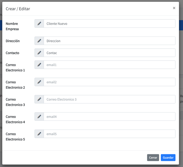 Igualmente, al darle click al botón Editar o nuevo nos abre el modal para agregar o modificar