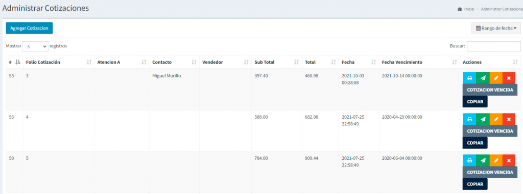 Nos permite realizar cotizaciones para enviársela al cliente y si el cliente confirma convertimos la cotización en venta