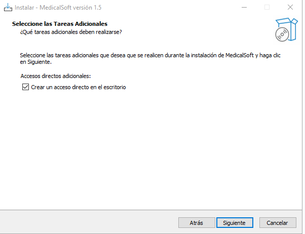 Ahora nos mostrará la ventana de tareas adicionales, vamos activar la check para crear el acceso directo al escritorio