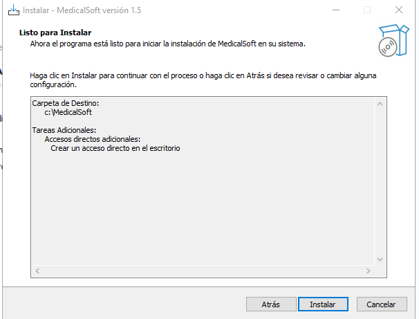 Posteriormente nos arroja el resumen de la instalación, le damos click en instalar