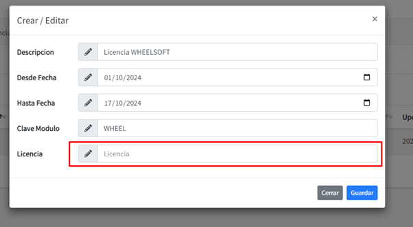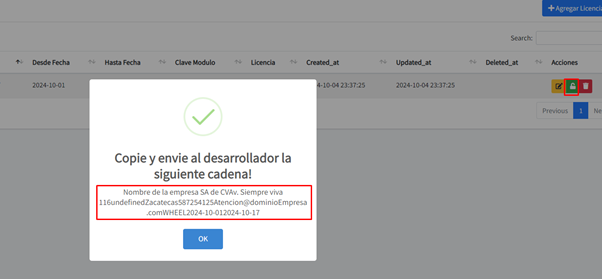Una vez enviado y realizado el pago el desarrollador le enviará una licencia la cual tiene que capturar en el campo licencia