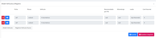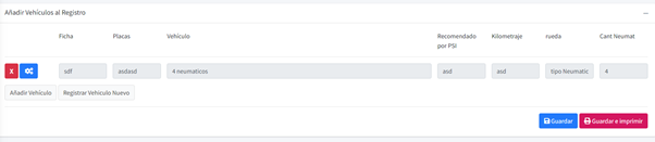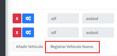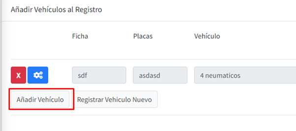 Como se puede observar, en la parte media tenemos los botones de añadir vehículo y Registrar Vehículo Nuevo