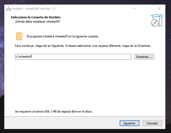 La siguiente ventana elegimos la carpeta destino, la dejamos tal y como está y le damos siguiente
