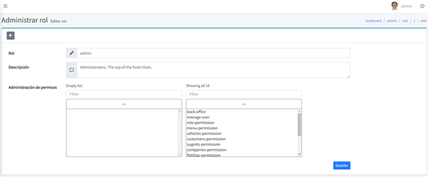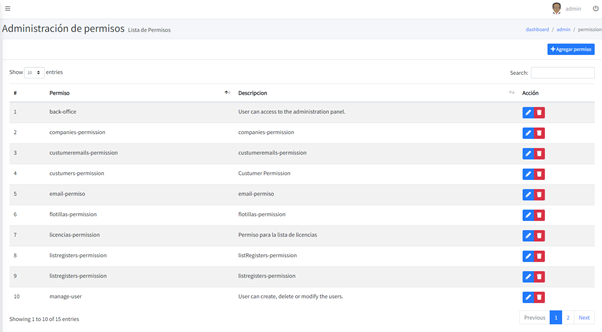 Aquí damos de alta, modificamos y eliminamos los permisos necesarios en el sistema, es mejor no tocarlo