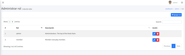 A continuación, vemos la lista de roles