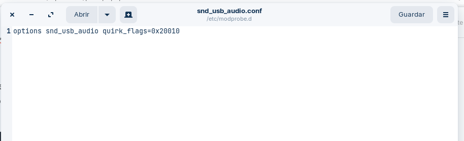 sudo gedit /etc/modprobe.d/snd_usb_audio.conf