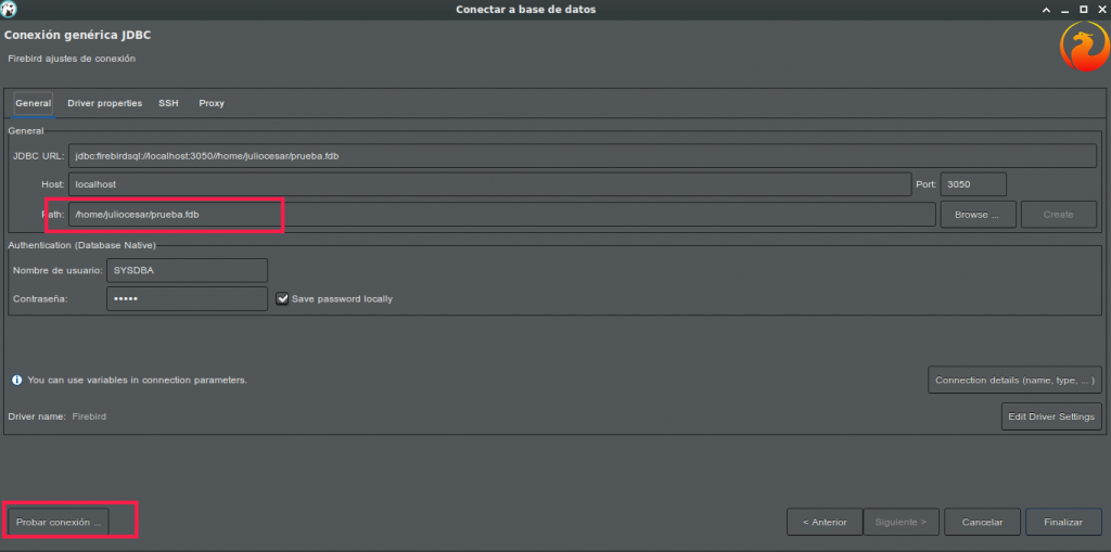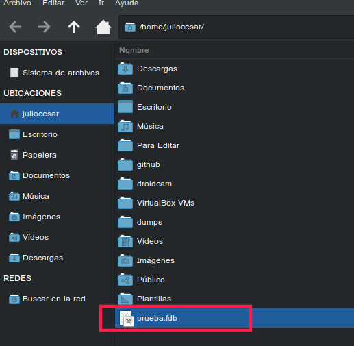 CREATE DATABASE '/home/juliocesar/prueba.fdb';