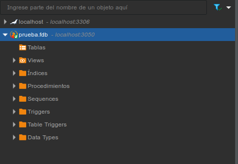 Si todo salio bien ya podremos crear tablas y administrar la base de datos prueba.fdb