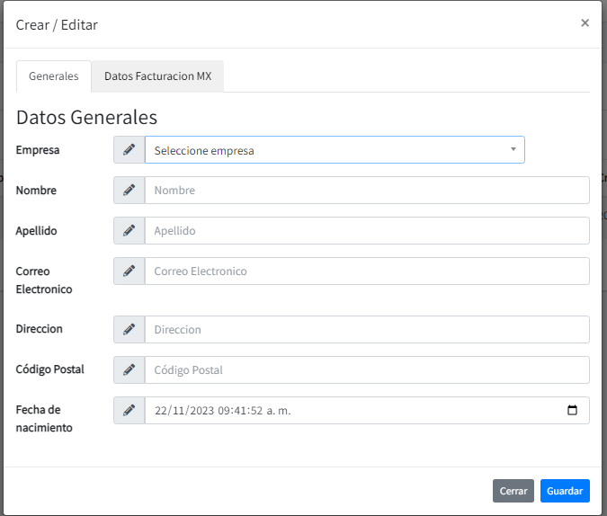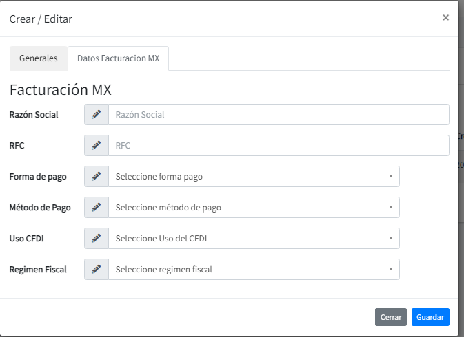 Datos Extra Facturación