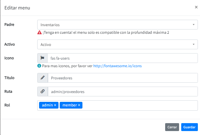 Creamos el menú de proveedores tal cual se ve en la imagen