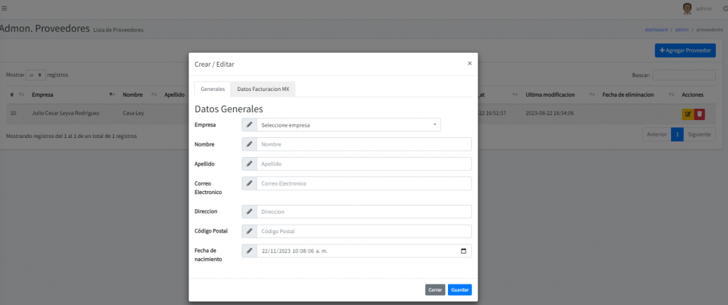 Y listo ya tenemos nuestro catalogo de proveedores
