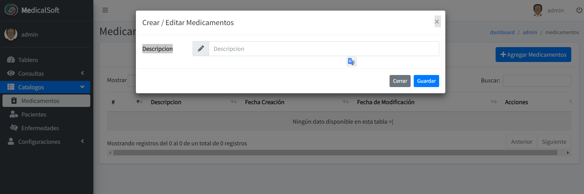 Ya creamos el CRUD para pacientes, ahora será necesario crear un CRUD para los medicamentos.