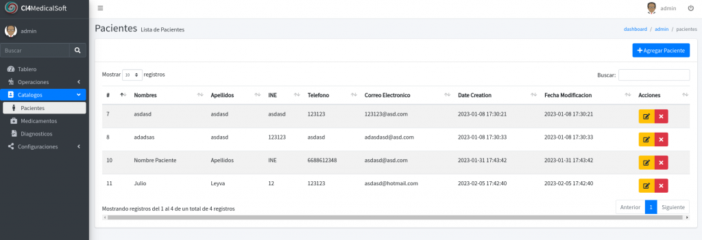 CodeIgniter 4 medicalSoft es un software básico para la correcta administración/manejo del catálogo de pacientes, historial médico, control de fechas, impresión de recetas.