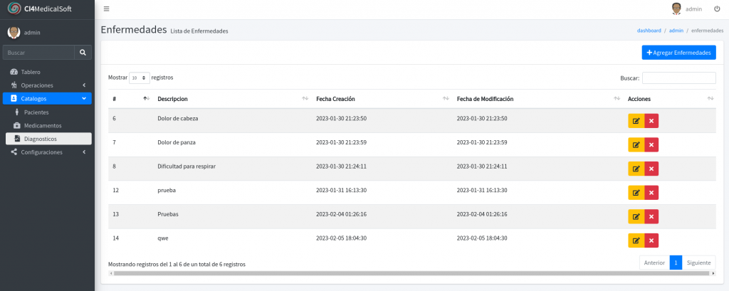 - altas bajas y cambios de diagnósticos / enfermedades