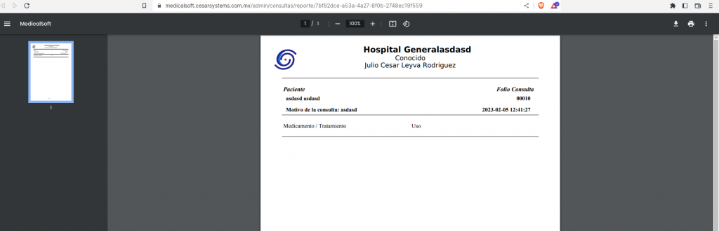 - Imprimir en PDF prescripción médica