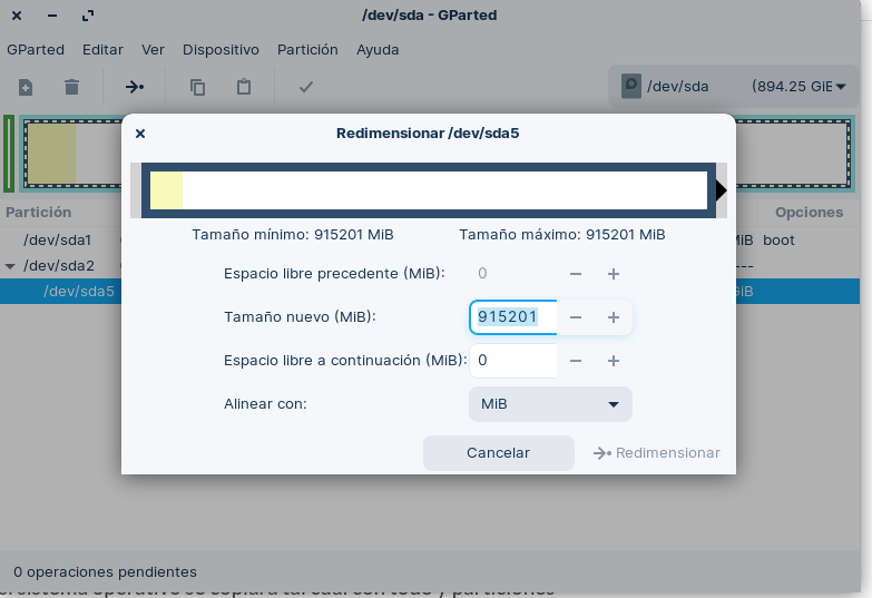 Ahora suponiendo que la unidad origen es sda y la unidad destino sea sdb corremos el siguiente código