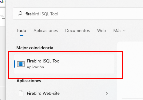 En el ISQL Tool corremos el siguiente comando para crear la base de datos