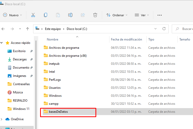 Creamos una carpeta que será en donde guardaremos las bases de datos