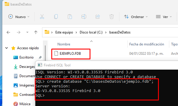 create database "C:\basesDeDatos\ejemplo.fdb";