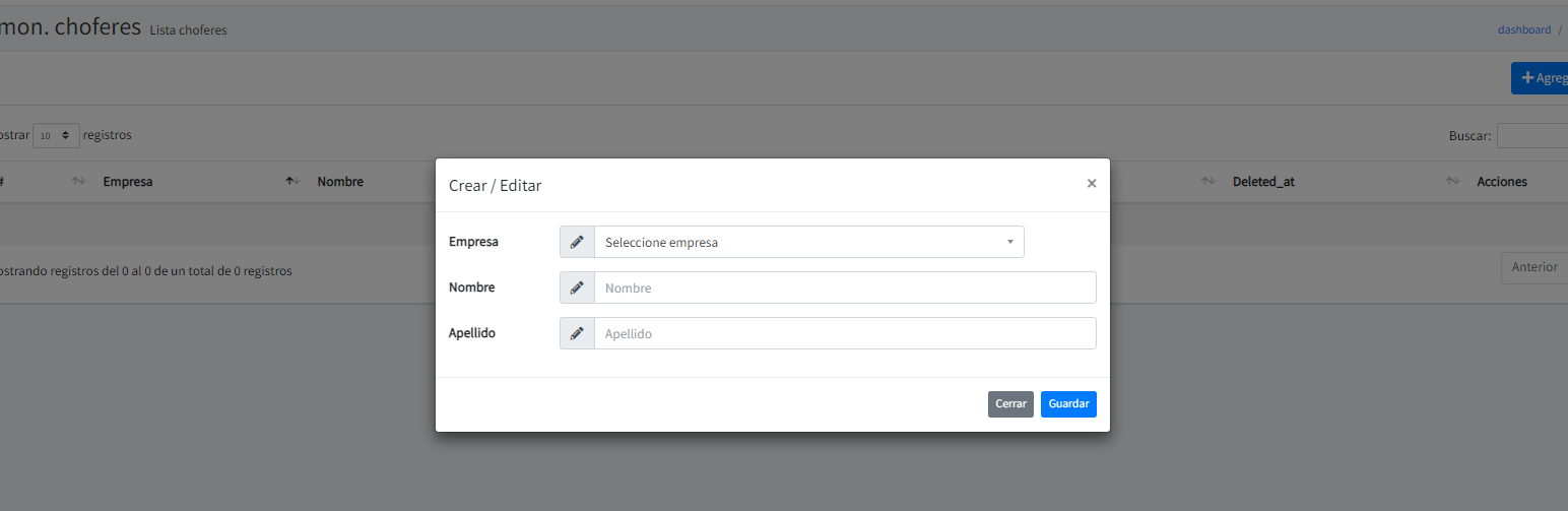 Creamos el siguiente archivo para la captura App/Views/modulesChoferes/modalCaptureChoferes.php con el siguiente código