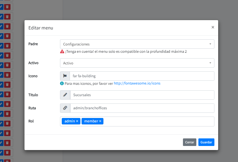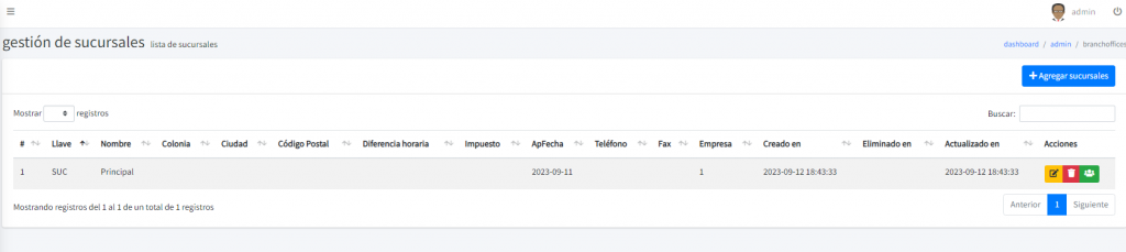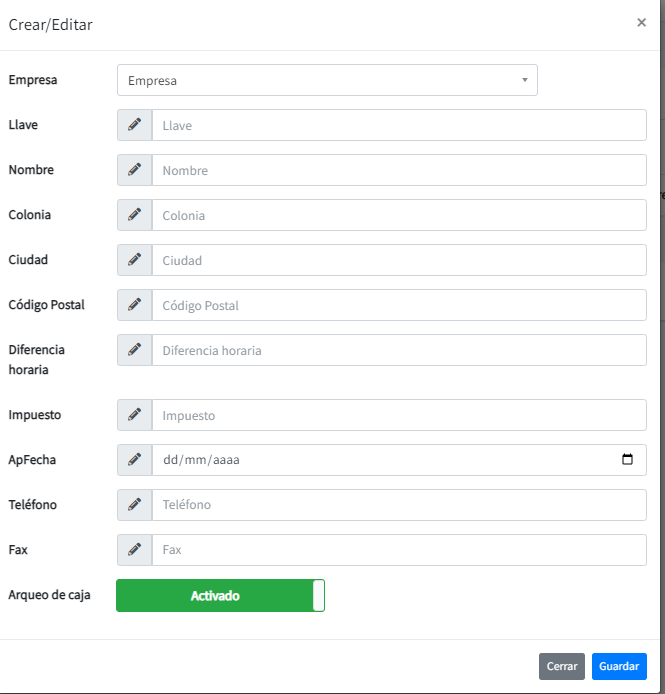 Ahora sigue el código del modal para capturar/editar los datos de la sucursal