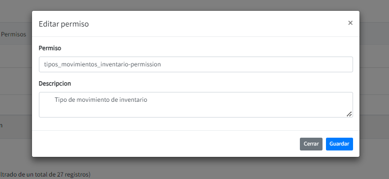 Creamos los permisos tal cual se ven en la imagen, posteriormente lo agregamos a los roles y usuarios